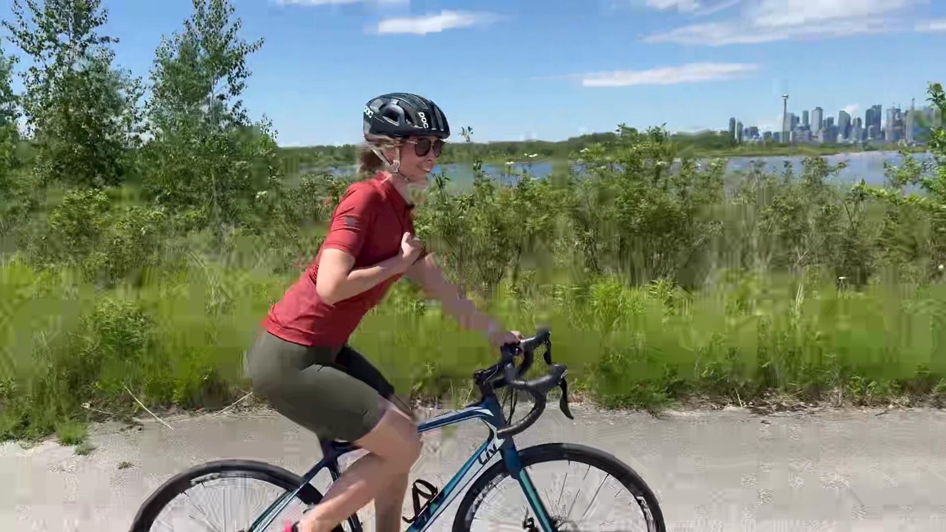 性感骑车女郎在郊外被徒步旅行者无套内射之前 在湖边给他口交