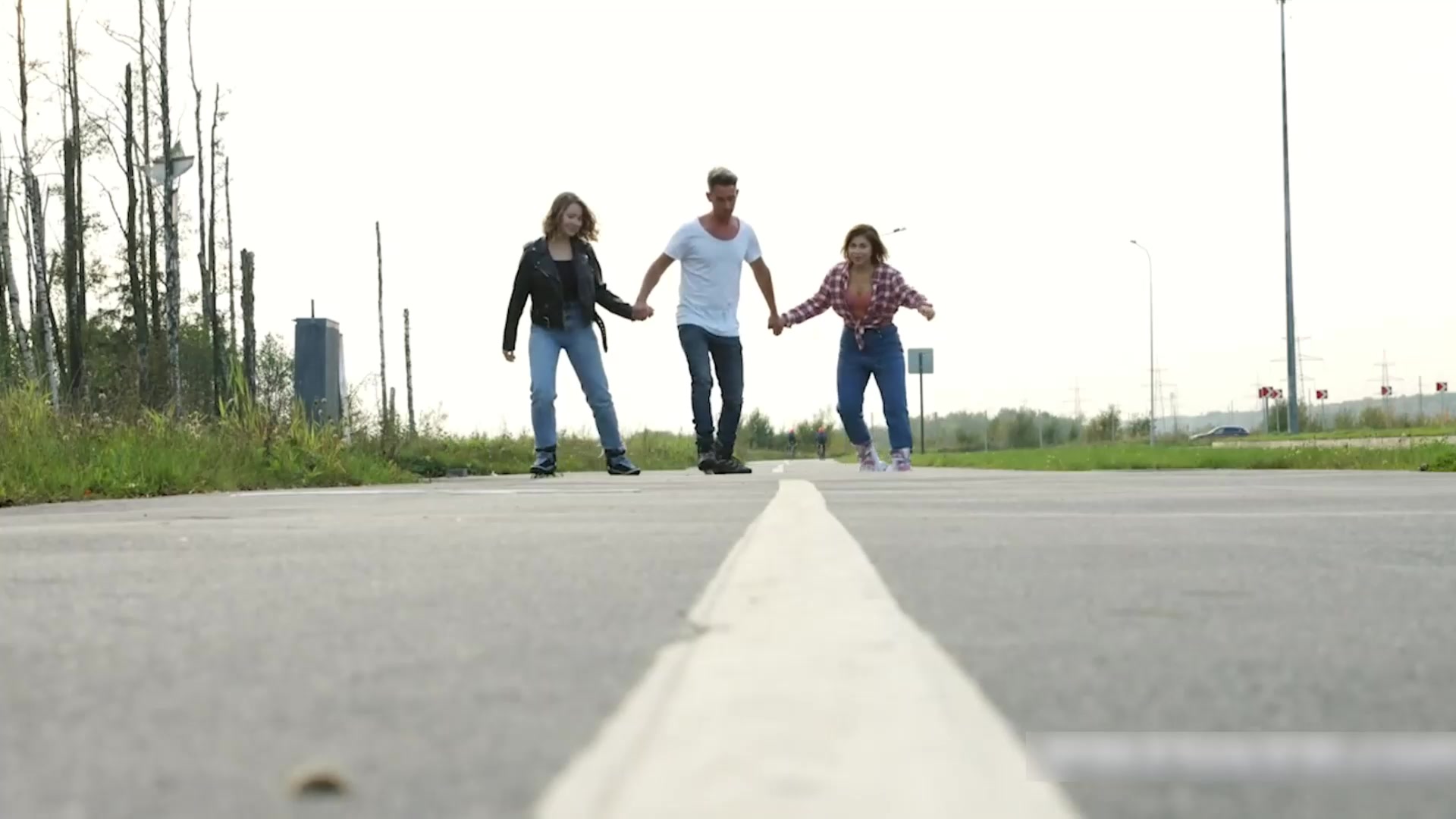 享受了一场火热的3p,滑冰后,她们把他带回家进行激烈的肛交。