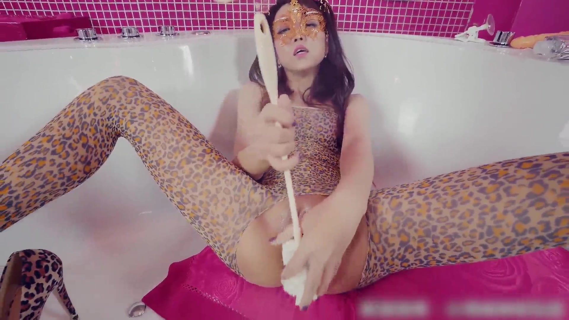 性感豹纹刷阴道假阳具虐双穴