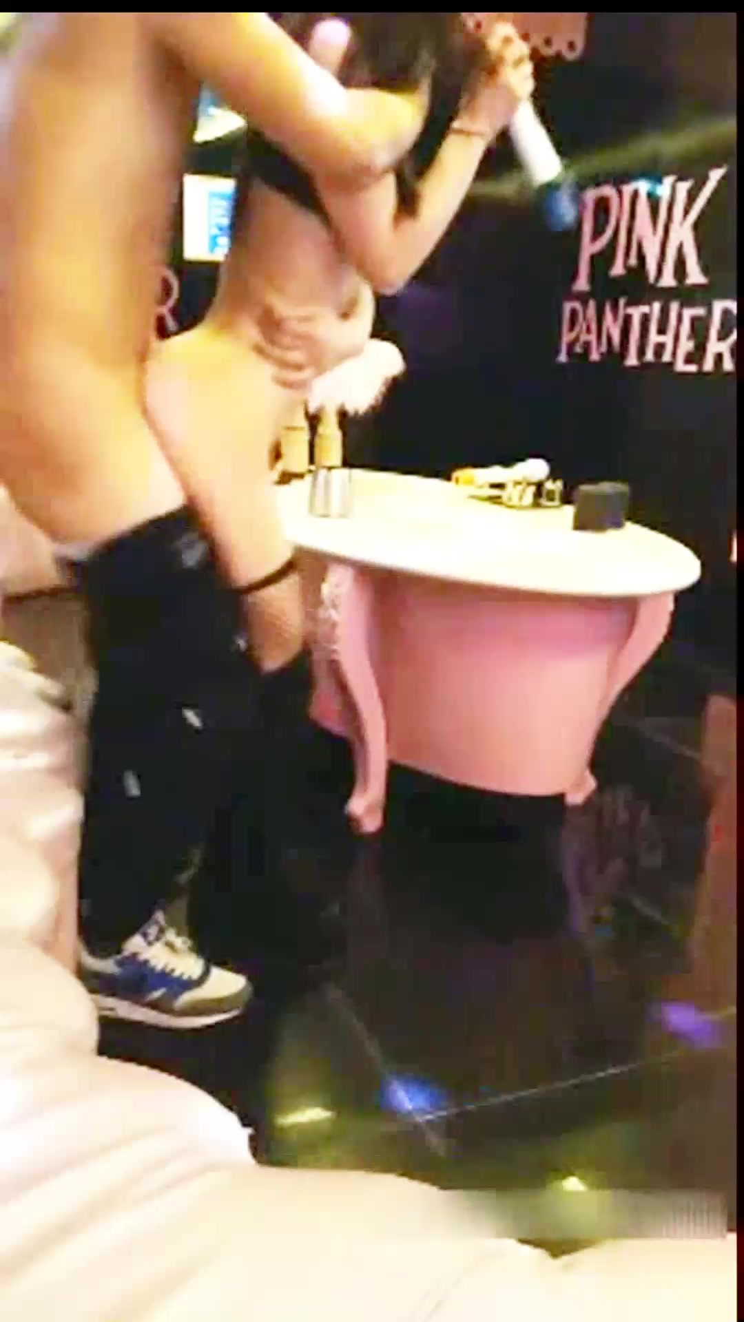 2人站在茶几上边操边唱歌